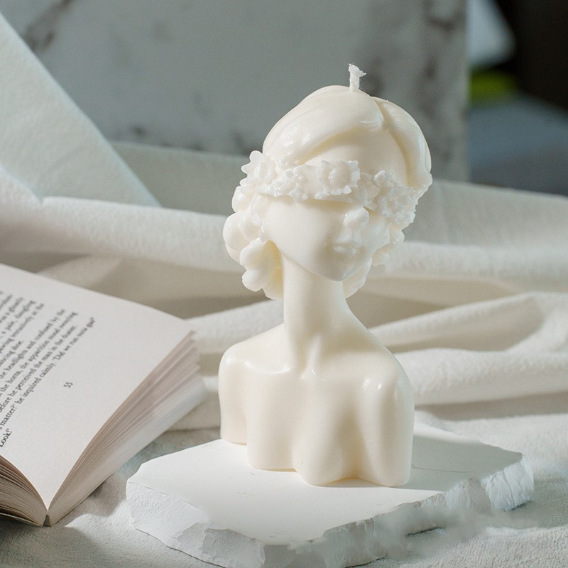 - Masked girl sculpture candle