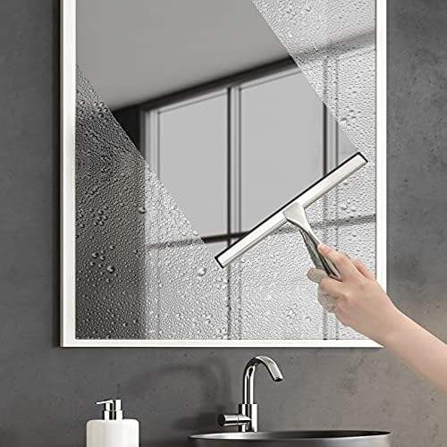 High-quality silicone blade glides smoothly to remove water, soap scum, and fog without leaving marks. -